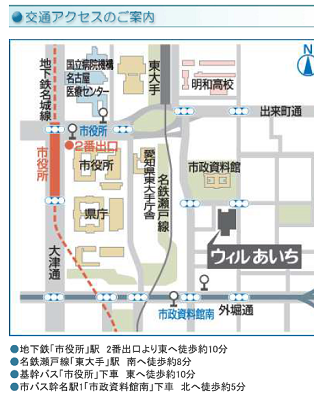 ・名古屋市営地下鉄 東山線(5分)-栄駅(のりかえ) 名城線(5分)-市役所駅下車 …徒歩10分